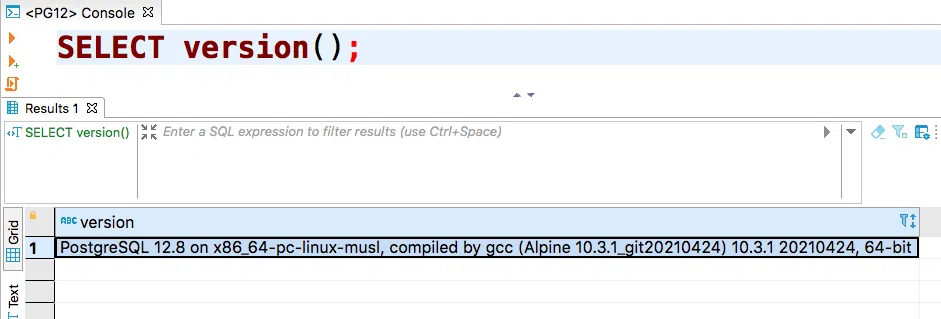 Kết quả trả vềPostgreSQL 14.0 on x86_64-pc-linux-musl, compiled by gcc (Alpine 10.3.1_git20210424) 10.3.1 20210424, 64-bit